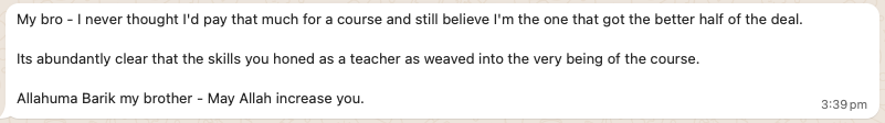 "This isn't just a boring video course. It's a mentorship. The 1-2-1 engagement with Jamal has been instrumental to my success."
